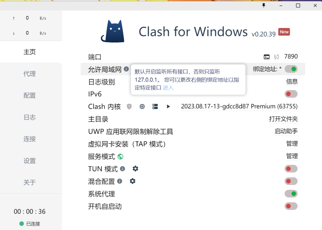 2.开启Clash的允许局域网/LAN