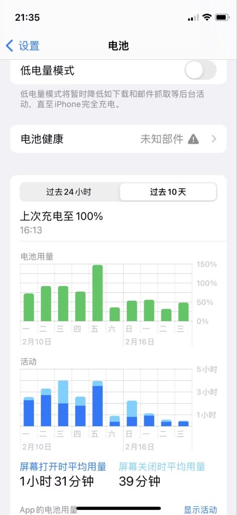首当其冲的是电池容量,12mini原装电池容量仅有2227mAh(13mini为2406mAh),续航焦虑在这款小屏机上体现的淋漓尽致,在远离电源的地方需要时不时的下拉控制中心查看电量